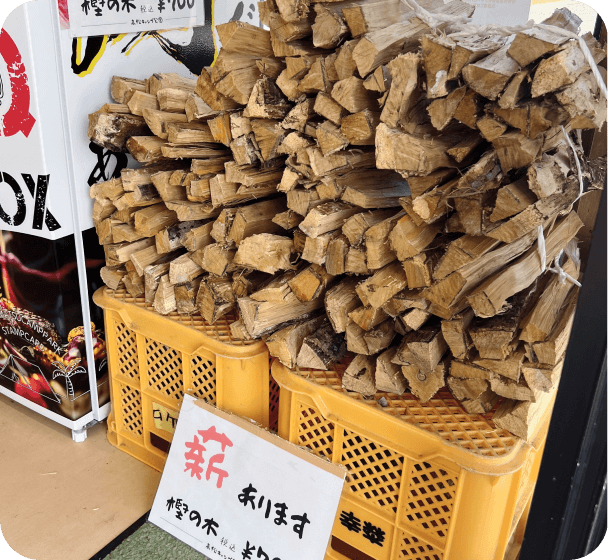 - 薪、炭、ガス缶、ライター、着火剤、洗剤、スポンジ、焼き網、シャンプー&リンス、ミニトーチ など