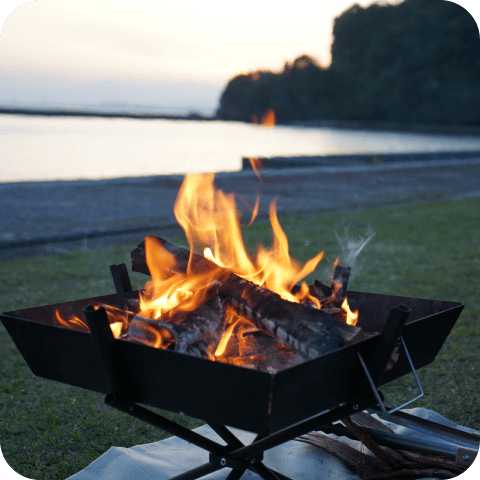 焚き火すべてのサイトで焚き火(バーベキュー)が可能です。ただし、焚き火シートを敷くなど必ず直火にならないよう対策をしてください。焚き火シートを使用されないと、芝生が焼けてしまいます。